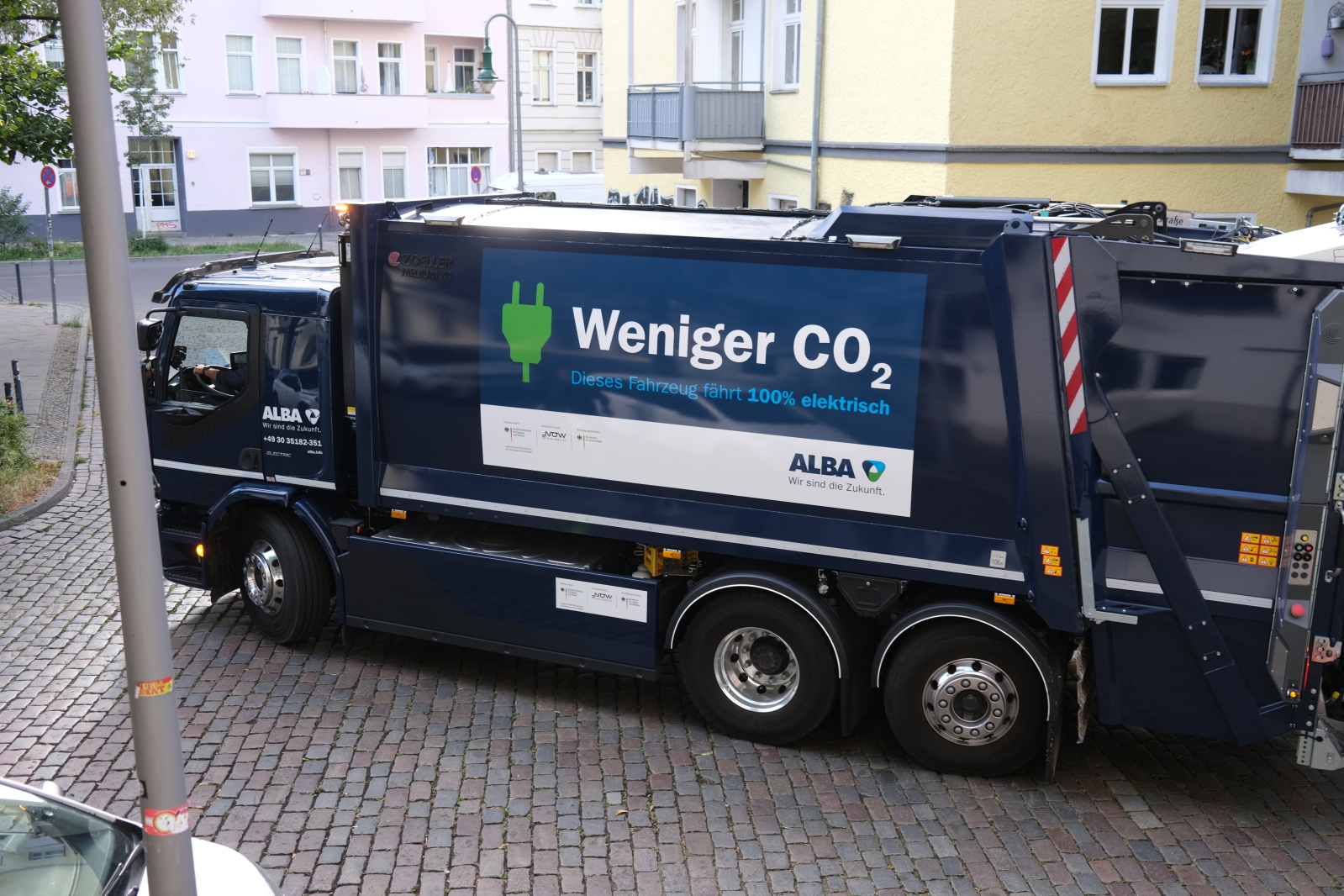 Electric trash collection truck; Broken pot lid; Broken shifter cable